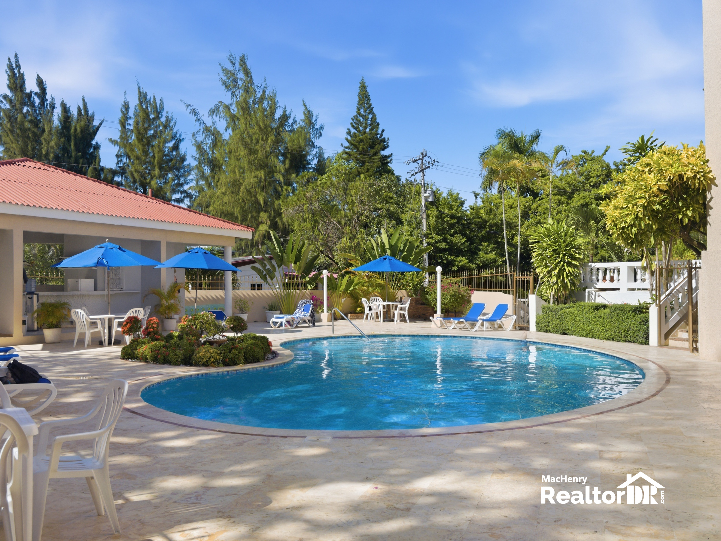 The building offers security, parking, and a well-maintained pool area with a shared space for preparing food and drinks, giving the property a relaxed, mini-resort feel without being a large or busy complex.