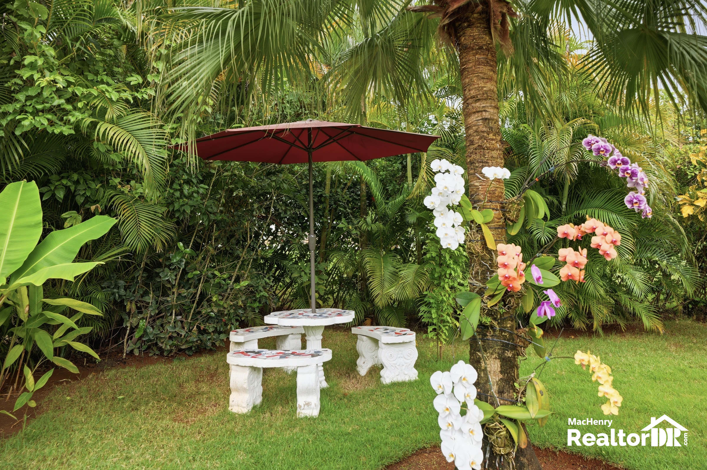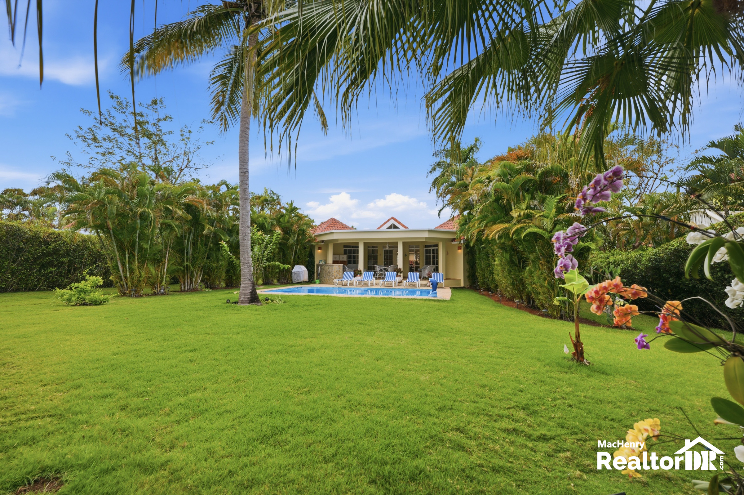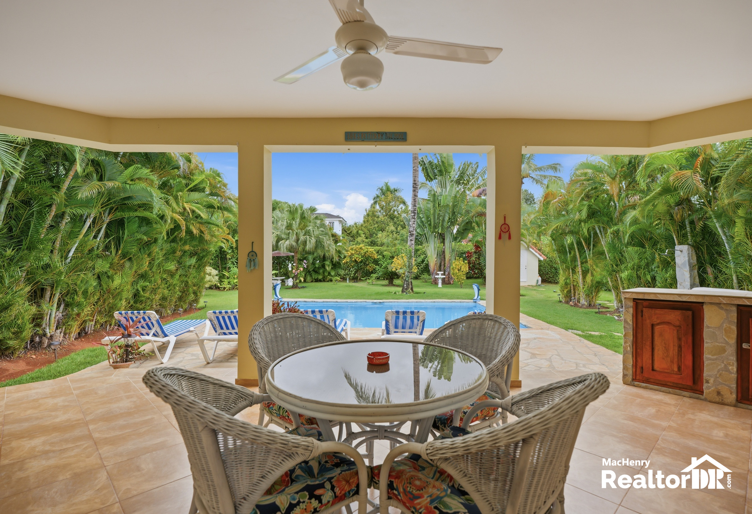 Set on a generous 1,074 m² lot with 147 m² of construction, this property stands out with its lush landscaping, mature fruit trees, expansive outdoor living areas, and a prime location just steps away from the community restaurant, adding everyday convenience to its relaxed Caribbean setting.